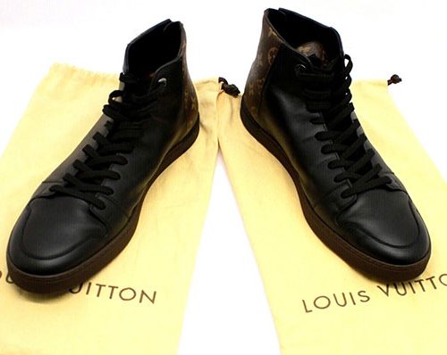 Louis Vuitton Back and Brown Leather and Monogram Canvas High-Top Sneakers