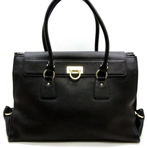 Salvatore Ferragamo Lotty Black Leather Shoulder Handbag Large Tote