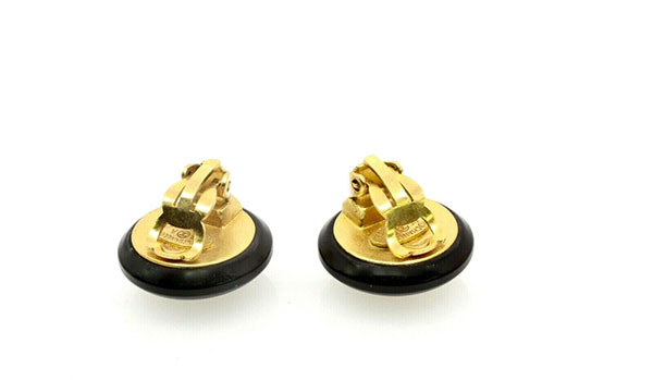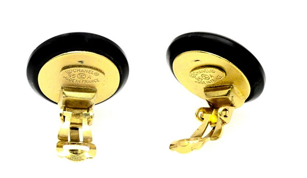 Chanel CC Logos Button Motif Clip-on Earrings Gold Black Clip-On 95A