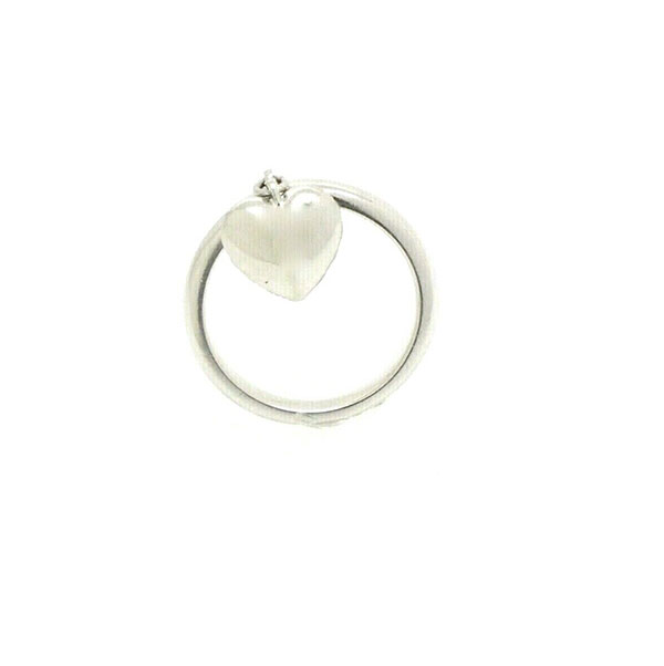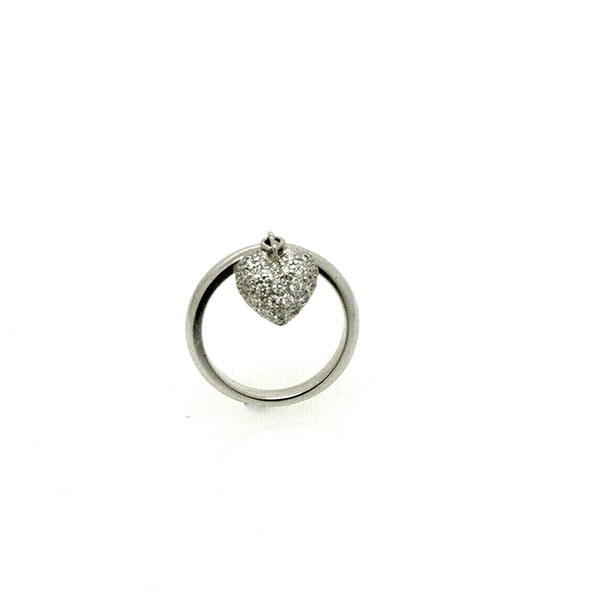 It is size 5.25 and has a pave heart diamond hanging from the band.