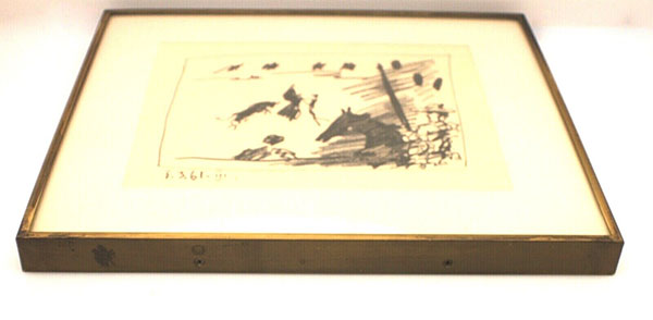 This item is in great condition and has been framed professionally back in 1961 in gold color. It is 16.75″ x 14.25′ x 1.75″