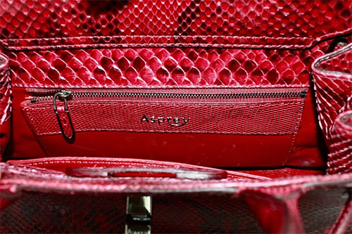 This gorgeously iconic python handbag by Asprey, is lovely in red, and would look great with any outfit. Can be used as a handbag, or shoulder bag. Handbag is in great condition, even the strap, and comes with a dust bag. Retails for $17,500. Our low price, $5,200.